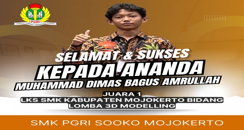 Pada ajang Lomba Kompetensi Siswa (LKS) SMK Se-Kabupaten/Kota Mojokerto yang digelar pada 28 Februari 2024, M. Dimas Bagus Amrulloh, siswa kelas XI Jurusan Multimedia, berhasil meraih nilai tertinggi dalam bidang 3D Modelling. Seleksi ini diikuti oleh empat sekolah dari wilayah Mojokerto, dan Dimas dengan gemilang melampaui para pesaingnya, membuktikan keunggulannya dalam bidang yang digelutinya.